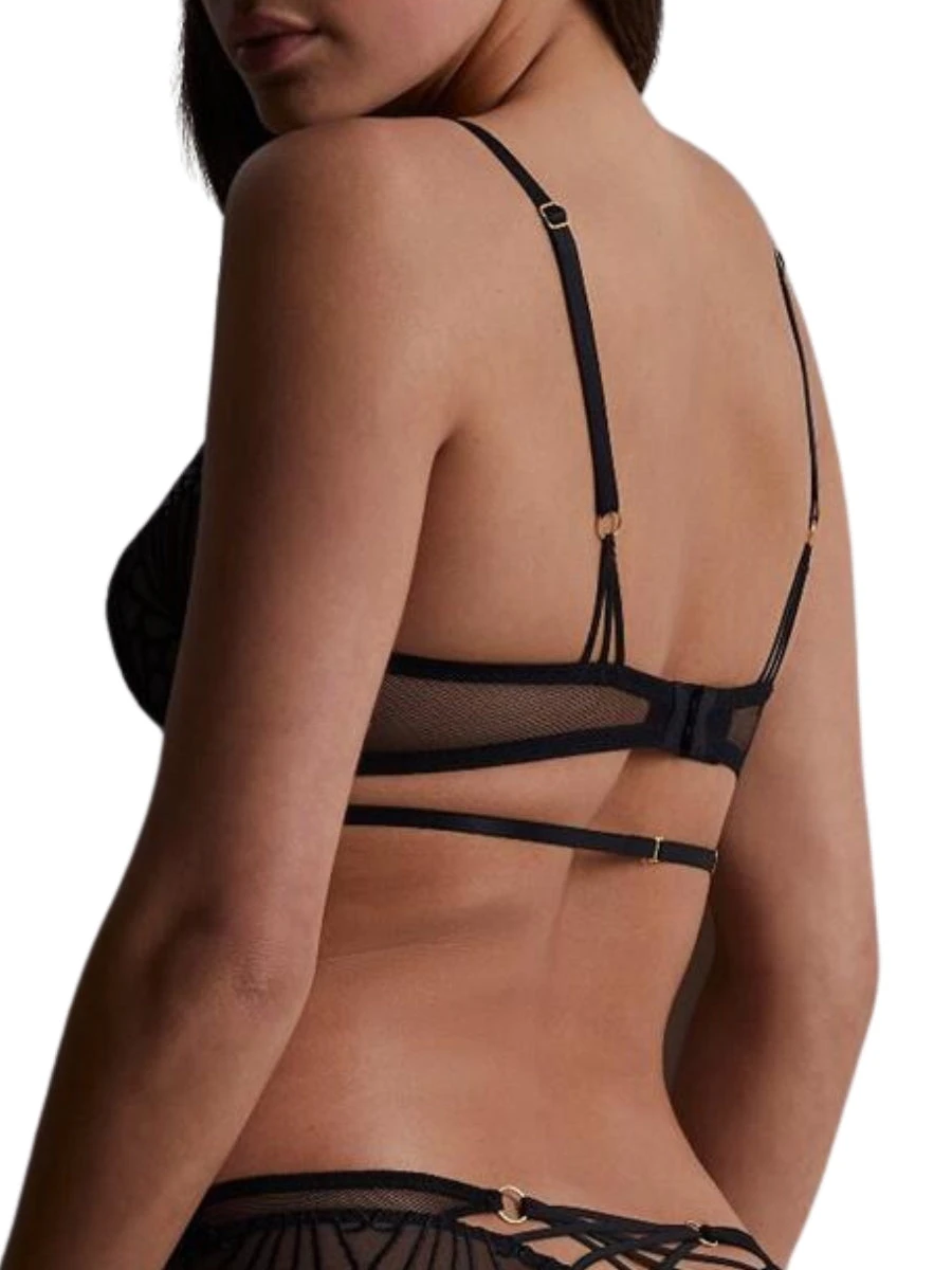 Indulge in the ultimate luxury with Aubade’s L’Indomptable Triangle Plunge Bra in Afterdark. The sheer fabric and sexy strap detailing create a sensual look, while the plunge and high apex design provide the perfect fit and shape. Channel your inner confidence and sensuality with this exclusive piece from Aubade.