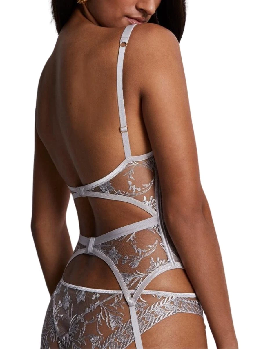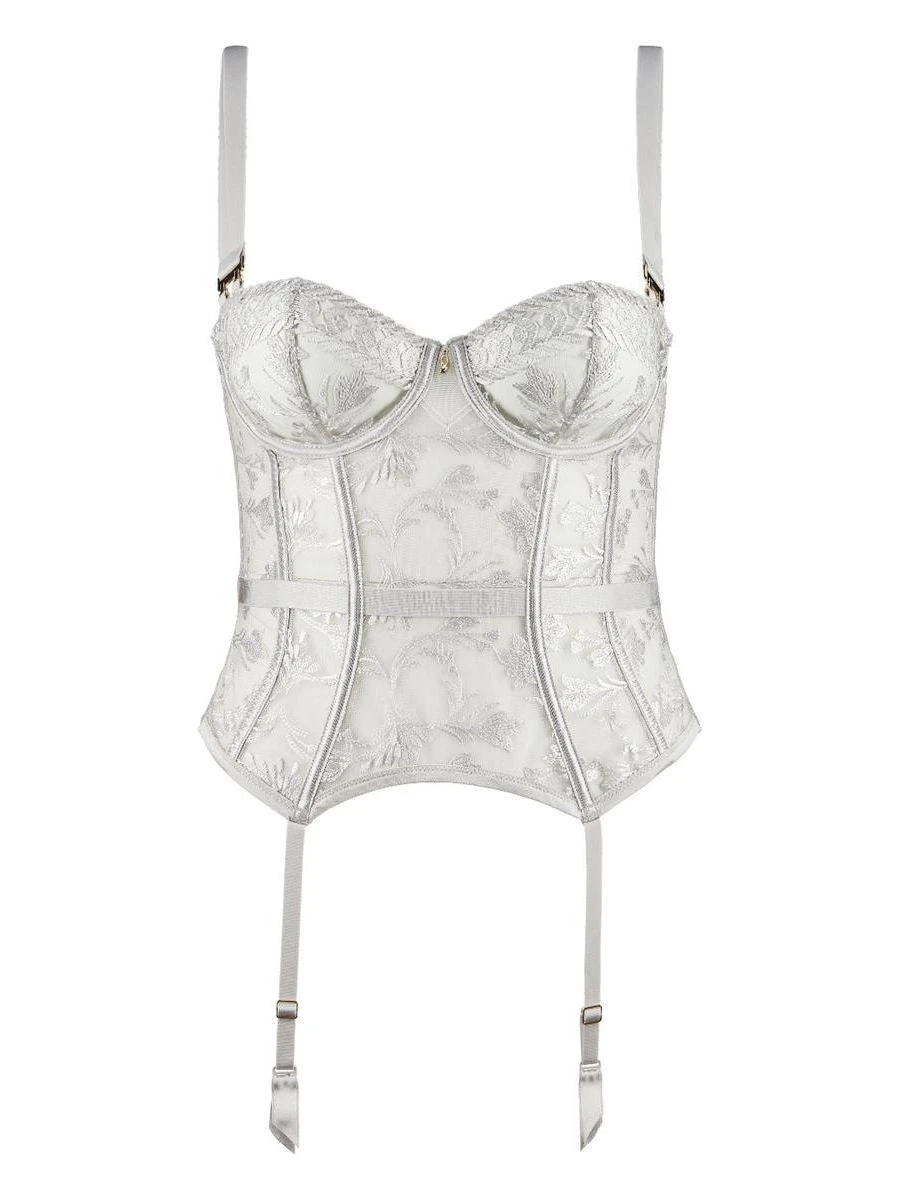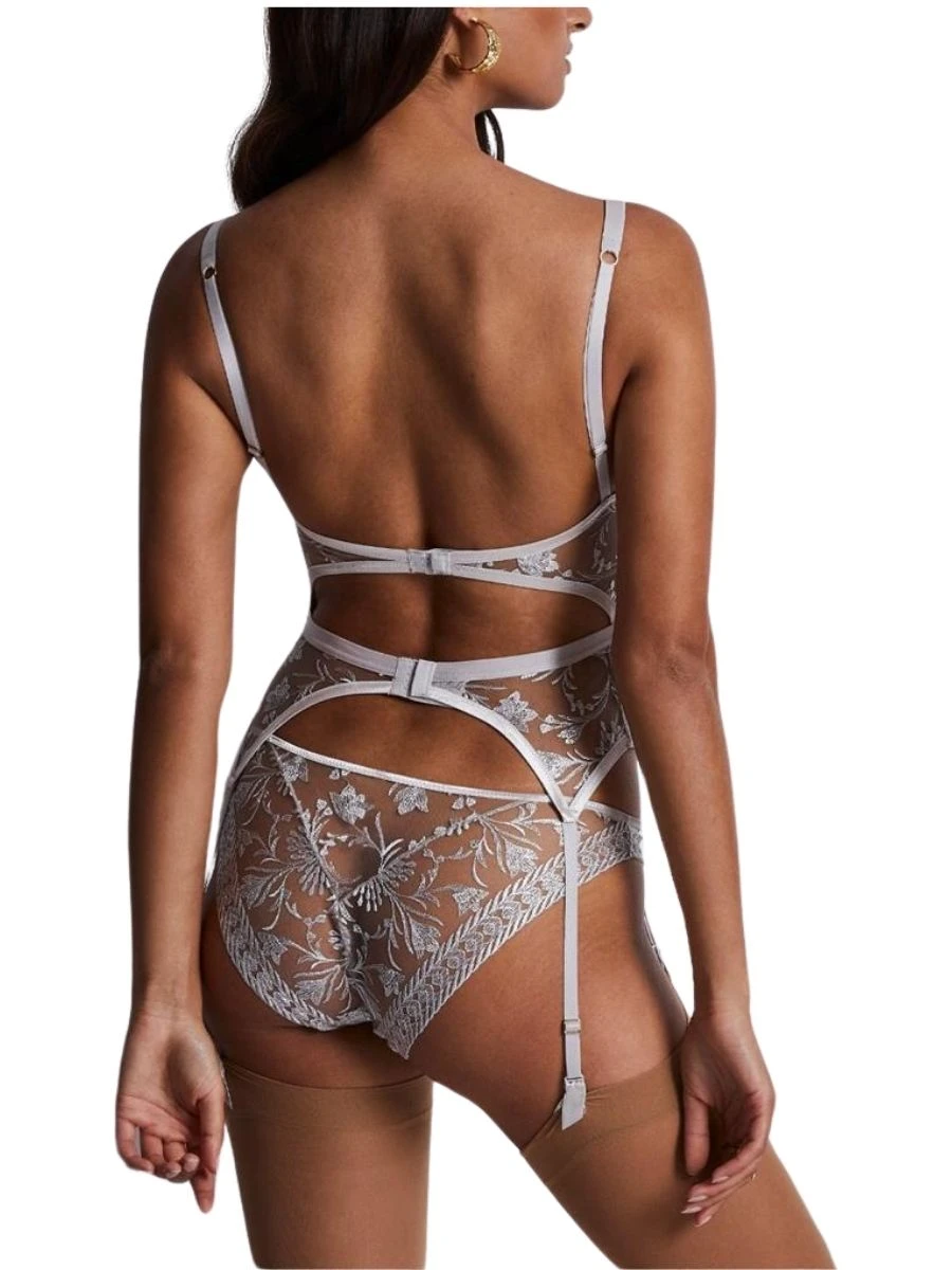 Indulge in luxury with the Magnetic Spell Guepiere in Platinum by Aubade. This exquisite basque features a sexy half cup design, intricately crafted with a sheer fabric that will leave you feeling alluring and confident. Revel in the intricate details of this piece, making you feel like a work of art.