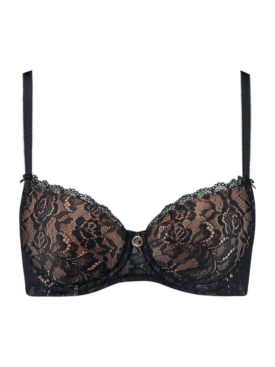 Experience the ultimate in understated luxury with the Rosessence Care Half Cup Bra in Black from Aubade. This elegant bra features a half cup design and lace detailing, while providing a cleavage boost and padded support for a flattering and comfortable fit. Embrace the art of seduction with this sophisticated and exclusive lingerie piece.
