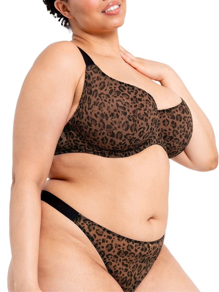 Indulge in the finest intimates with our Cool Cat Tanga. Made by renowned brand Curvy Kate, this mid-rise thong boasts a sexy, mesh design with a fierce leopard print. Better yet, it’s environmentally friendly, made from recycled materials. Elevate your lingerie collection with this exclusive piece.