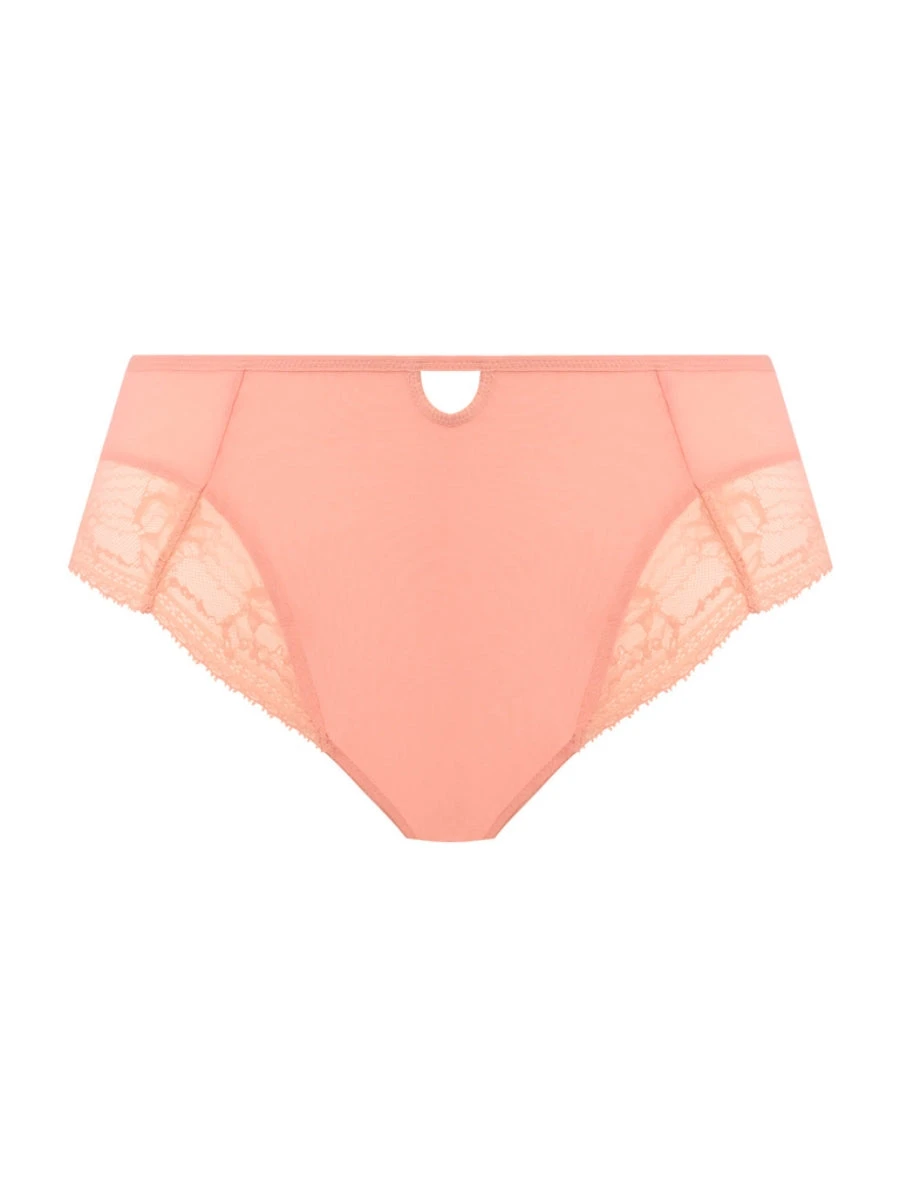 Indulge in luxury and style with the Elomi Kendra Full Brief. Designed for fuller coverage, this brief features double layer stretch mesh for a comfortable fit. Soft stretch lace panels on the front and back minimize visibility under clothing, while the keyhole detail adds a touch of sophistication to your waistline.