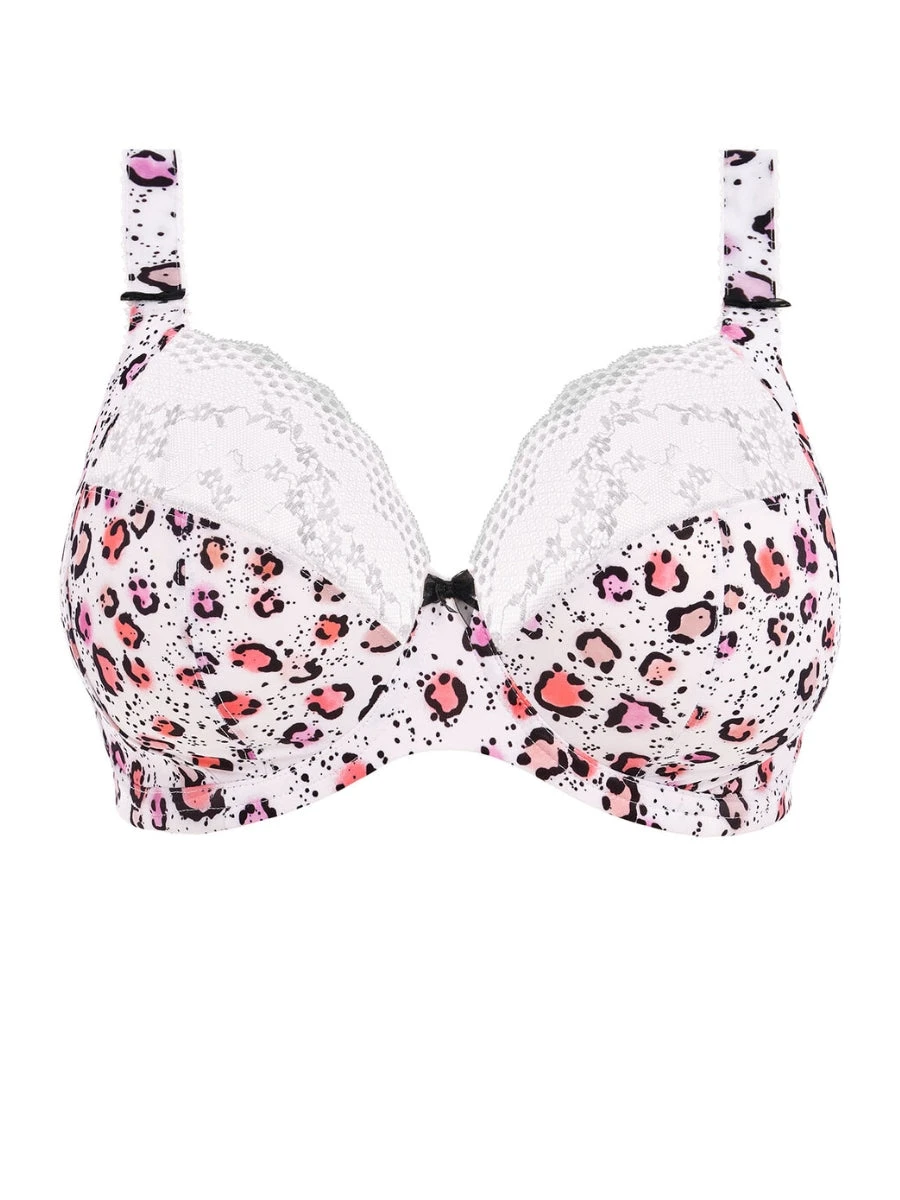 Introducing the Lucie Plunge Bra in Rumble by Elomi. With a low centre front, three section cup, and side support panels, this bra offers a plunging neckline and forward projection. The stretch lace top and printed design add a touch of luxury to this must-have piece. Elevate your lingerie collection with this exclusive and elegant bra.