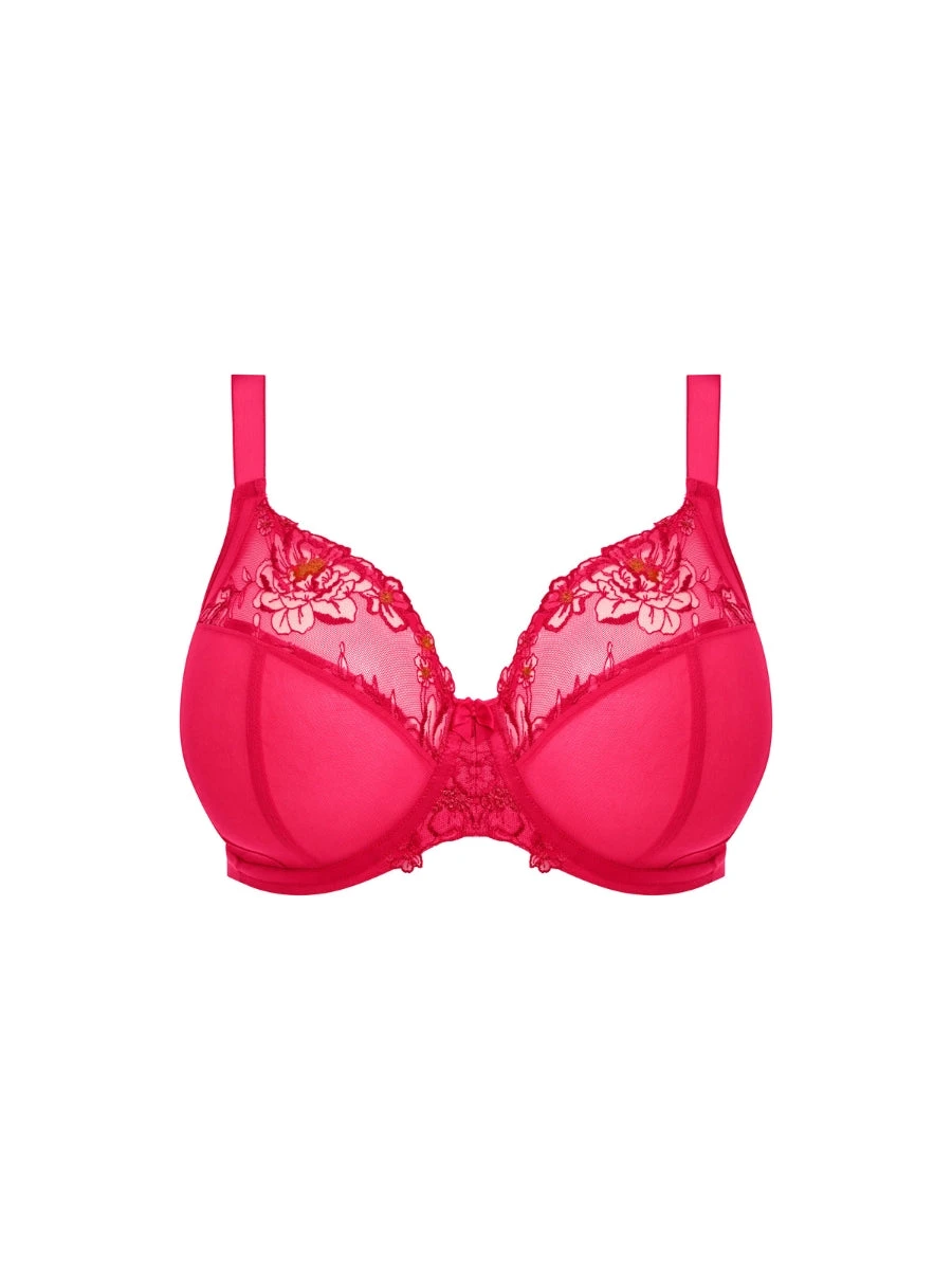 Indulge in luxury with the Teagan Plunge Bra in Azalea by Elomi. Based on the beloved Elomi Matilda Plunge Bra, this bra features precision printed embroidery for a tattoo-like floral design. The sheer, smooth satin look and low center plunge provide a luxe feel, while the underwired and non-padded design offers support and comfort. Elevate your lingerie collection with this sophisticated and exclusive bra.