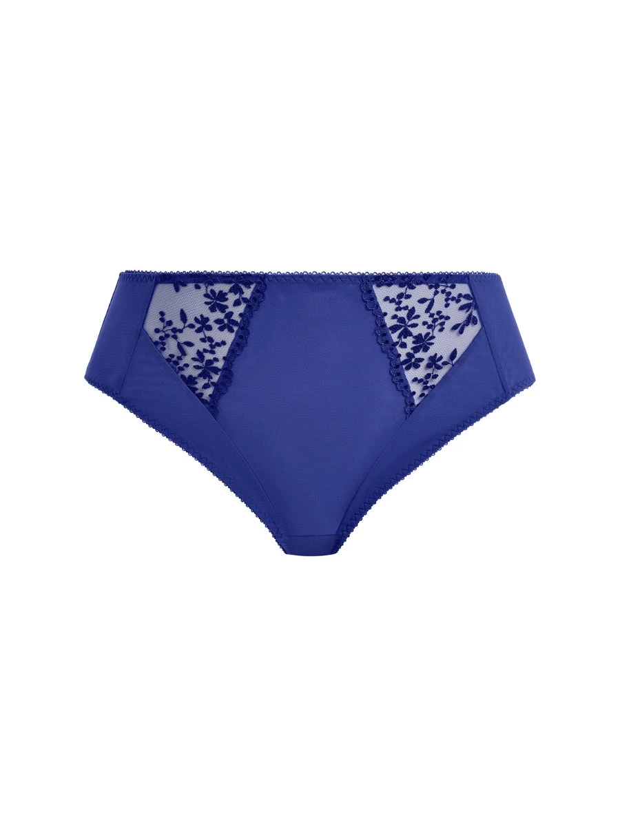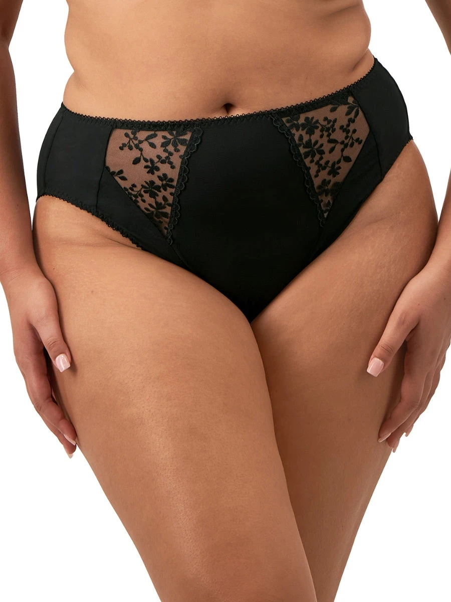 Elevate your lingerie collection with Zarla High Leg Brief by Elomi. This high waist brief features a flattering high leg cut and intricate abstract leaves and berries embroidery. The double layer stretch mesh ensures modesty and comfort. Indulge in luxury and sophistication with Zarla.