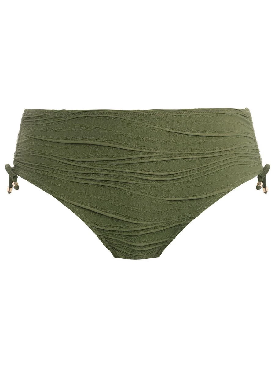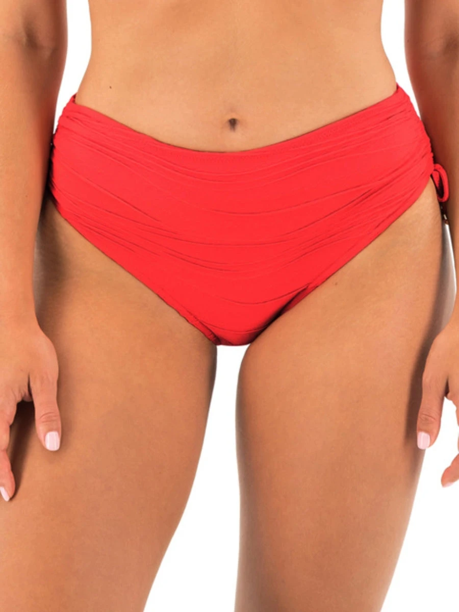 Introducing the luxurious Fantasie Beach Waves Bikini Short. This medium coverage bottom features a lower cut leg and adjustable tie sides for a flattering ruching effect on the tummy. Fully lined and adorned with rose gold bead details, this bikini short is a must-have for achieving the perfect beach waves look.