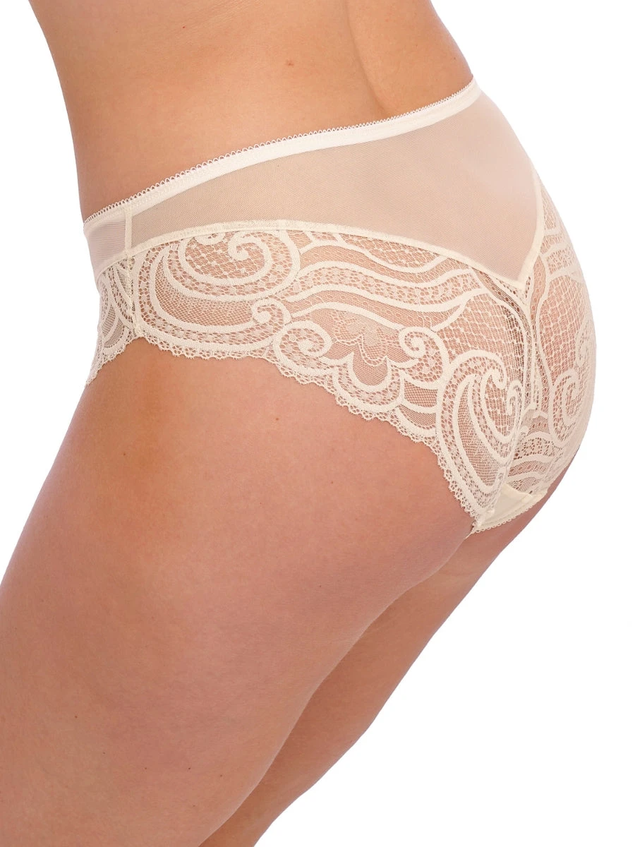 Introducing the Cerys Brief by Fantasie, elegance for every occasion. With delicate lace detailing and guipure embroidery, this mid-rise brief offers both comfort and style. The stretch lace provides a flattering fit while the lined front panel ensures modesty. Elevate your lingerie game with Cerys.