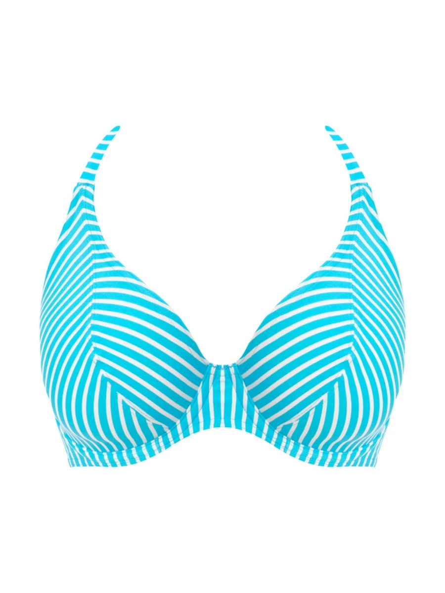 FREYA Jewel Cove Halter Bikini Top – Stripe Turquoise