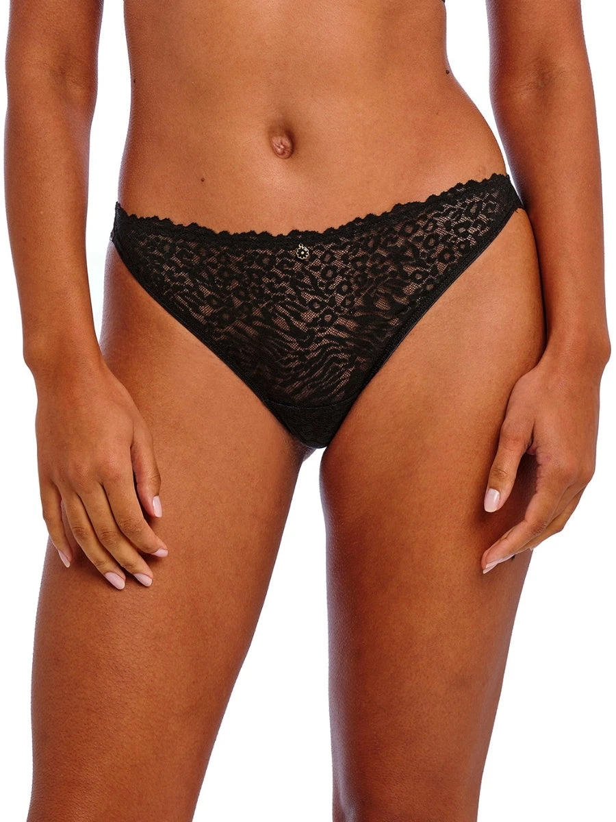 Indulge in the epitome of luxury with Freya’s Love-Haze Brazilian. Featuring a mid rise fit and exotic animal print lace, this brazilian brief exudes sophistication and elegance. With stretch lace and a delicate scallop edge, it embraces both comfort and style. Perfect for the ultimate indulgence.