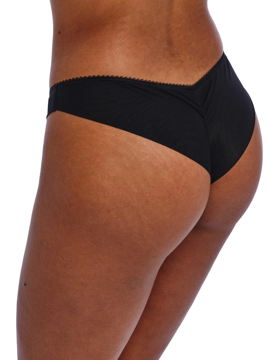 Indulge in luxury with the Loveland Brazilian by Freya. The mid-rise sheer brief features intricate embroidery and a seductive front keyhole detail. Embrace your most confident self in this cheeky fit that combines comfort and style, perfect for any occasion.