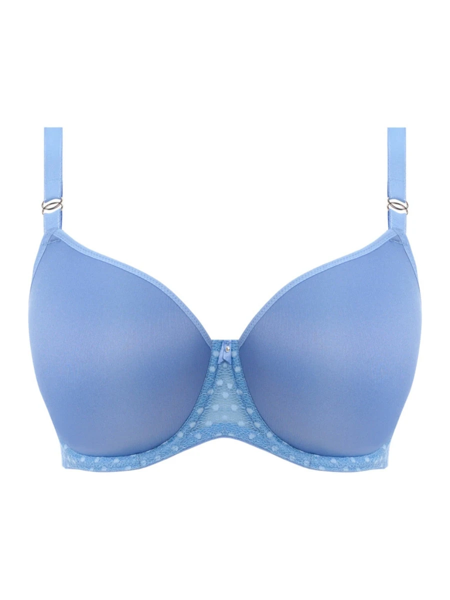 Freya Starlight Moulded Bra in Cornflower, based on Freya’s best-selling Idol shape bra. The underwired cups are smooth and seam-free providing a great silhouette under your favourite T-Shirts. It’s classic balcony styling provides you with a beautiful natural rounded look! Finished with fully adjustable straps with gold hoop jewel detailing. A must have in your everyday essentials.