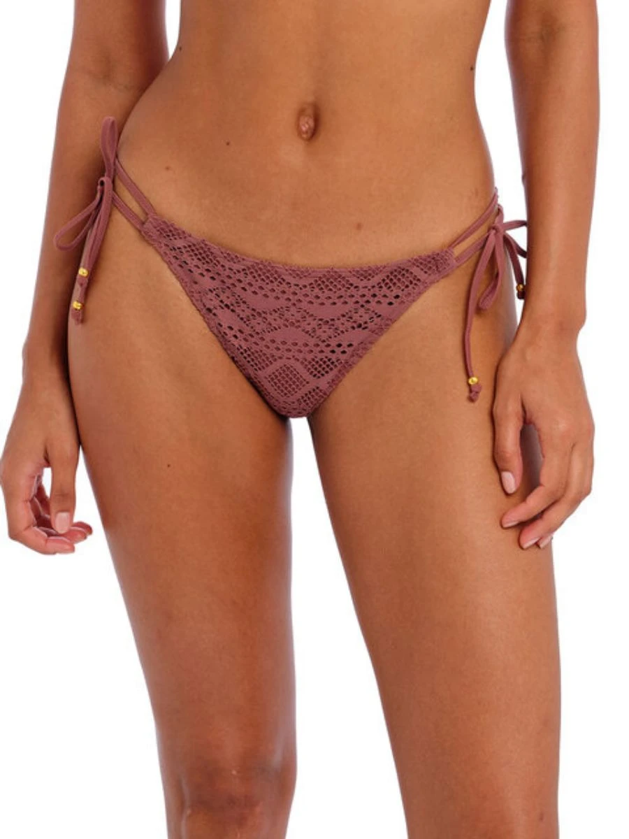 Add a touch of indulgence to your swimwear drawer with the stunning Sundance collection by Freya, which boasts a crochet inspired overlay design that is sure to make a statement in the sun! These playful tie-side bikini briefs include adjustable side ties with delicate bead detailing that allow for the perfect fit. Offering medium coverage on the rear for all-day comfort and confidence. A chic mix-and-match range available in a selection of colourways. A must have addition to your swimwear collection.