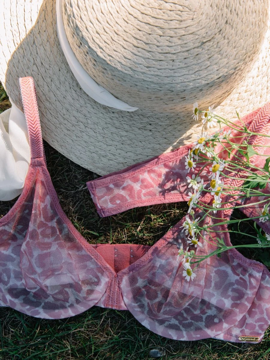 Glossies Sheer Plunge Bra from Gossard, in Blush Print. This bra comes from the best selling range, this plunge bra features moulded seamless cups. The non padded, deep V plunge style feature a side sling inside the cup, to fully support the breast. **This is only in cups DD-G**. Matches perfectly with the Glossies Short and the Glossies Thong.
