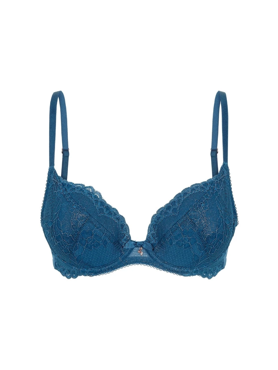 Fashioned from beautiful corded stretch lace is Gossard’s Superboost Lace Padded Plunge Bra in Deep Teal.