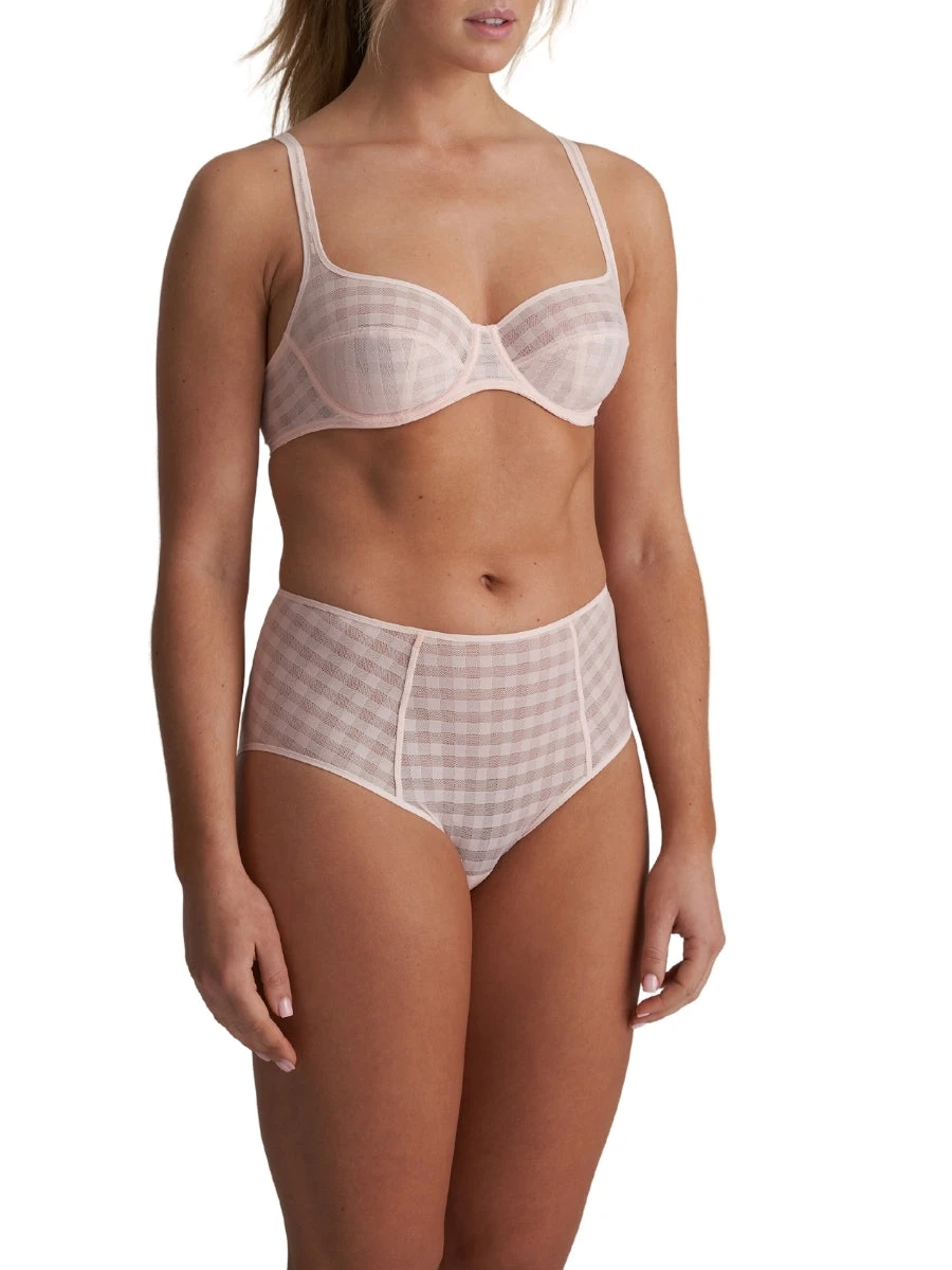 Elevate your lingerie collection with the Jereme Full Cup Bra in Glossy Pink by Marie Jo. The non-padded design gives a natural shape, while the underwiring provides support. Made with a sleek check print mesh, this bra combines style with comfort for a truly luxurious feel.