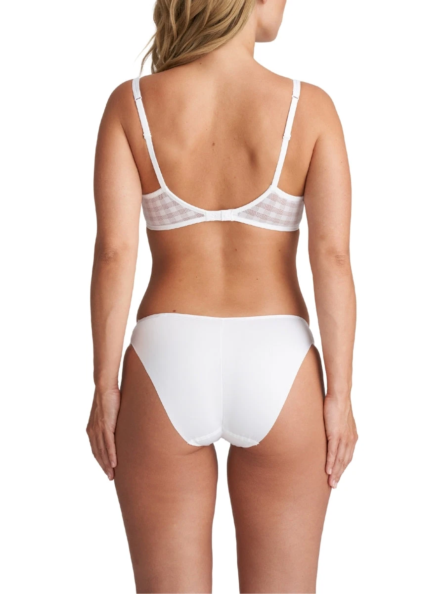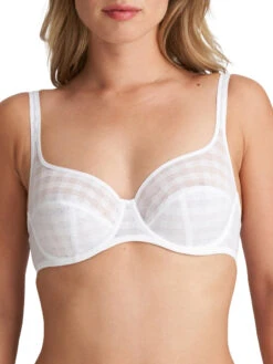 Elevate your lingerie collection with the Jereme Full Cup Bra in White by Marie Jo. The non-padded design gives a natural shape, while the underwiring provides support. Made with a sleek check print mesh, this bra combines style with comfort for a truly luxurious feel.