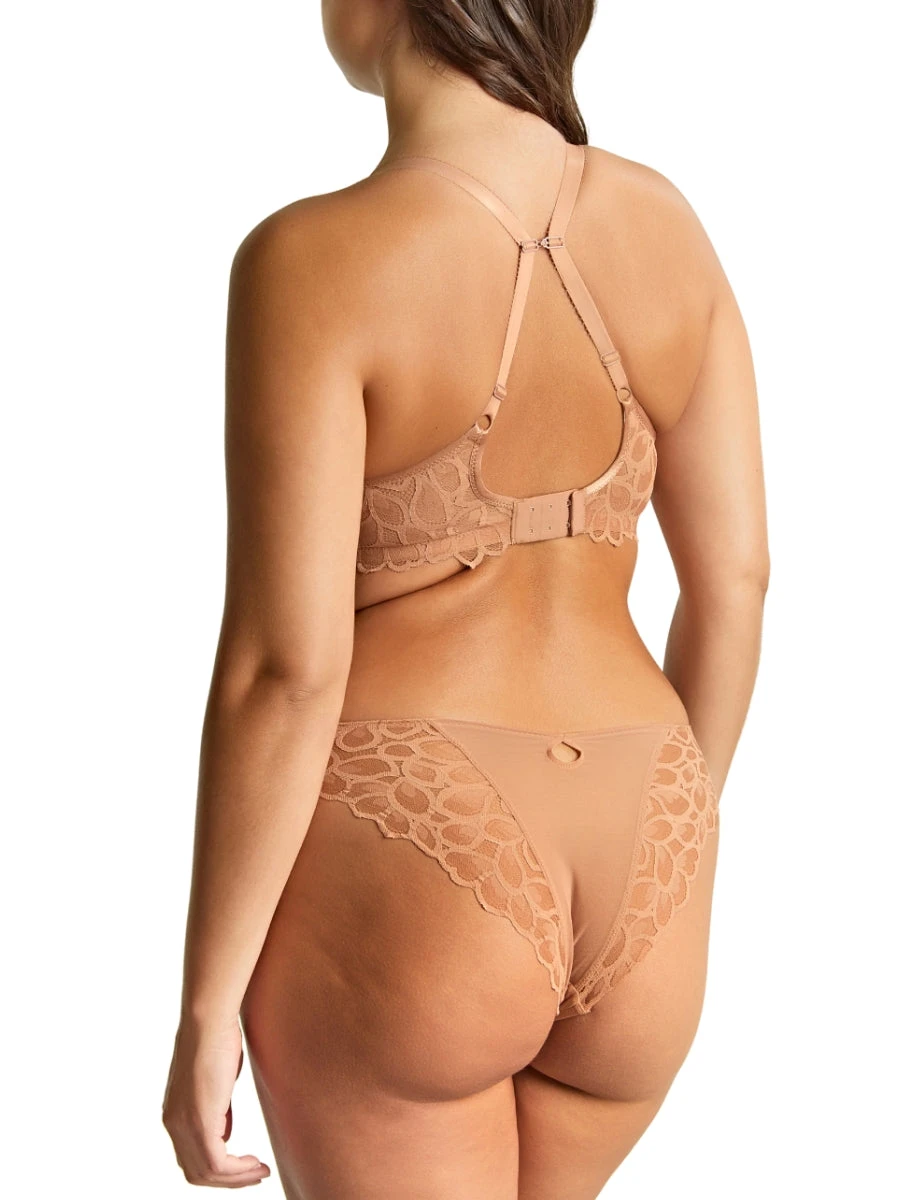 The Allure Spacer T-Shirt Bra in Honey by Panache combines elegant design with everyday functionality. Featuring the signature Allure lace and smooth, seamless moulded cups made from lightweight spacer fabric, it offers discreet support under clothing. The underwired structure and inner side sling in the larger cup sizes enhance lift and shape, while the J-Hook allows easy conversion to a racerback style for versatile wear. Perfect for those seeking comfort and sophistication in a t-shirt bra.