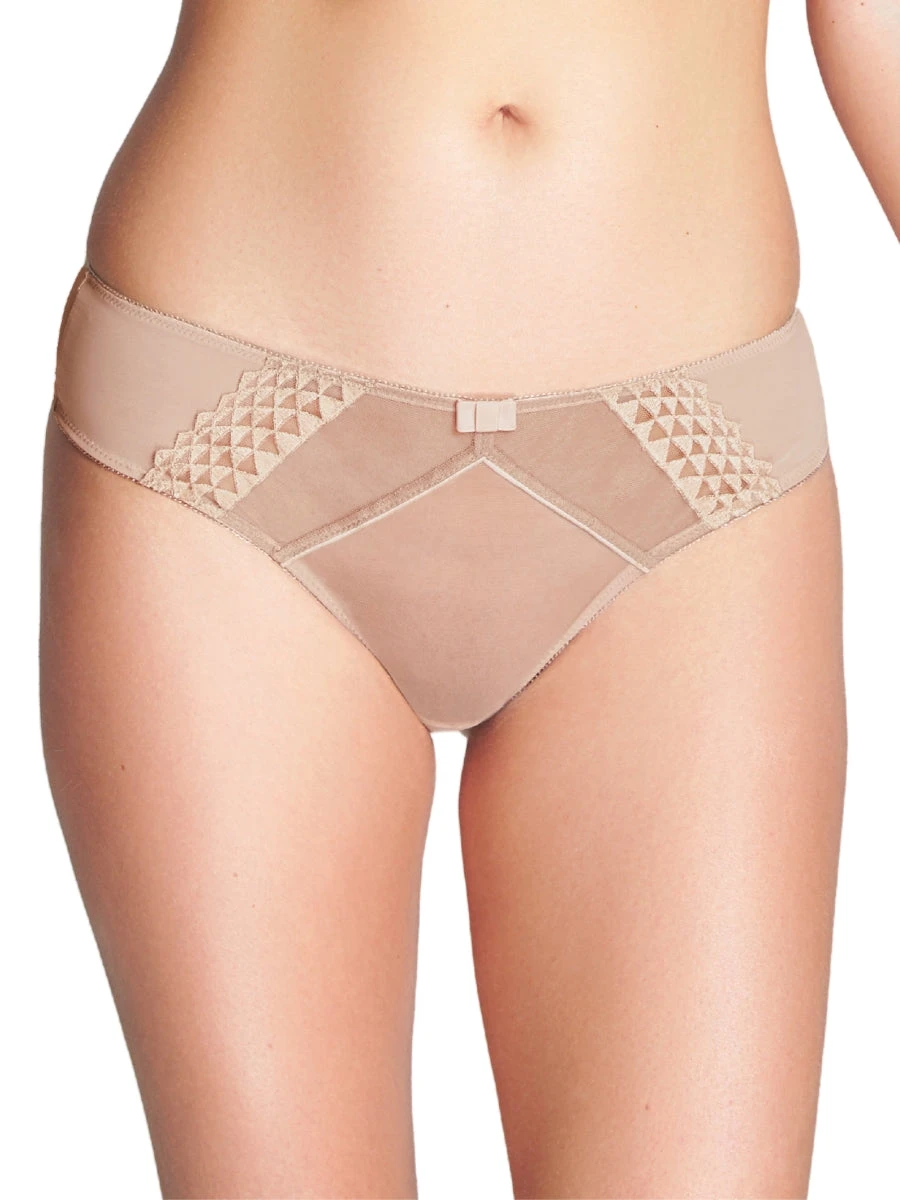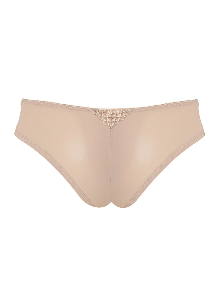 Indulge in luxury with the Asher Brazilian brief from Brand Panache. With its mid-rise and intricate embroidery, it completes your set and offers a smooth look with its folded back design. Elevate your lingerie collection with this sophisticated and exclusive piece.