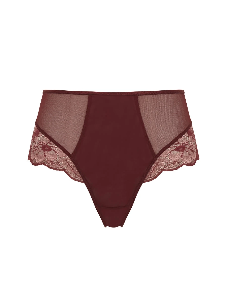 Indulge in luxury with the Sabrina High Waisted Brazilian Brief by Panache. This elegant piece features a high waist that flatters your figure and a Brazilian cut for a sophisticated touch. Crafted with delicate two tone lace, it’s the perfect combination of style and comfort.