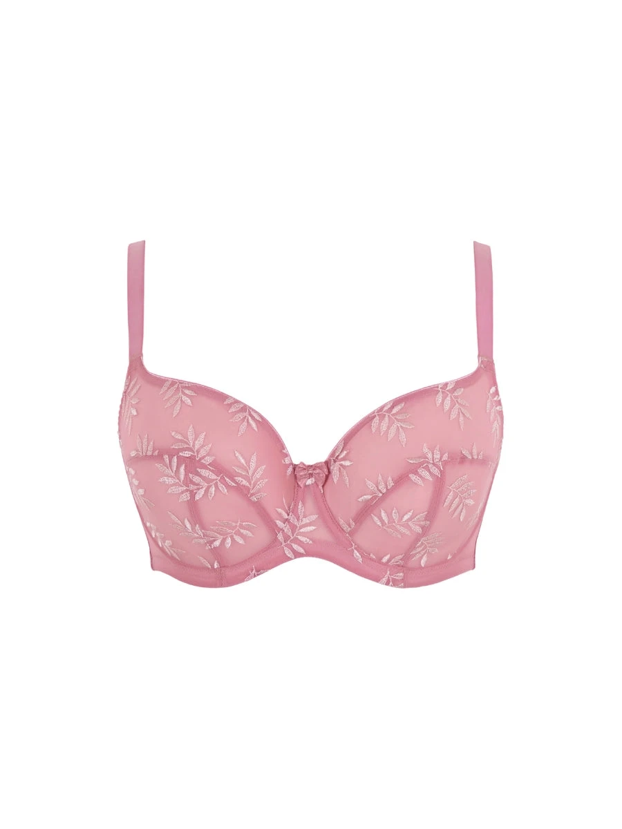 Indulge in a touch of luxury with the Tango Balcony Bra from Panache. This classic style features a rigid three piece cup for a secure fit and an elegant embroidered leaf design for a sophisticated look. Ultra supportive and uplifiting with laminated cups and powermesh wings it is perfect for everyday wear, this bra is a must-have in any stylish wardrobe. Experience the ultimate comfort and style in the Tango Balcony Bra in Soft Pink.