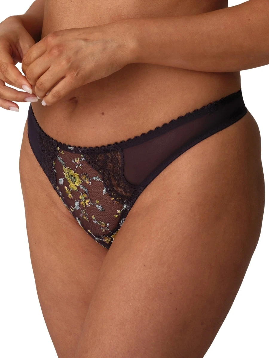 Elevate your lingerie collection with the Malba Thong from PrimaDonna. This exquisite thong is crafted with delicate lace panels and intricate floral embroidery for a truly elegant look. Its high leg cut and mid rise design will flatter your figure while the mesh back adds a touch of sensuality. Indulge in luxury with the Malba Thong.
