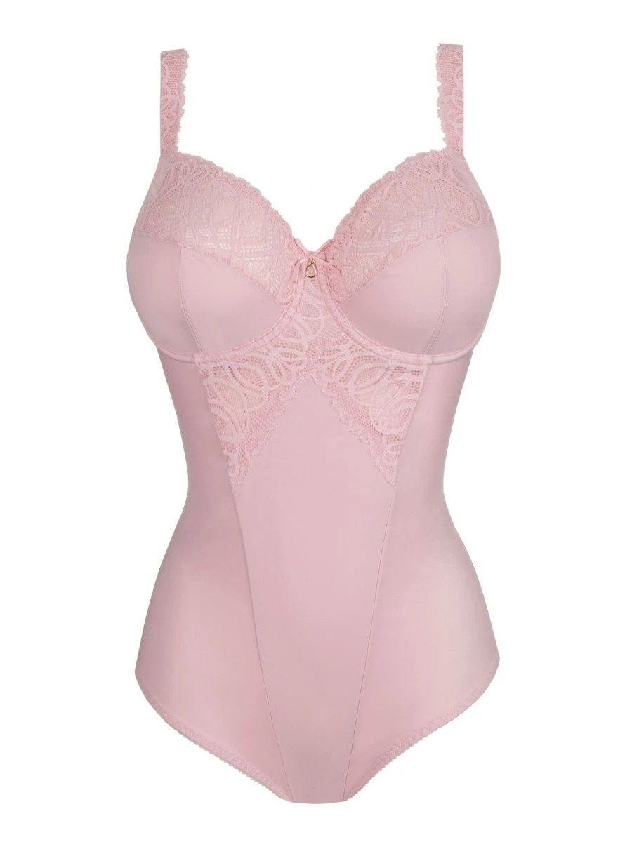Effortlessly elevate your outfit with the Salerno Full Cup Body by PrimaDonna. This luxuriously crafted bodysuit provides a flawless foundation, featuring underwire for support and non-padded cups for a natural look. The full cup design provides full coverage, along with lightly shaping materials that are adorned with intricate lace and lace decorated straps, create a sophisticated and elegant feel.
