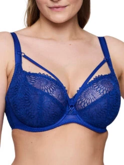 Stunning Primadonna Sophora range. Featuring a balcony bra with removable strapping. This feminine bra with a tattoo effect tulip cup has decorative detailing on the front which adds style and sophistication. The optional strapping accentuates your natural cleavage and looks amazing under low neck clothing.