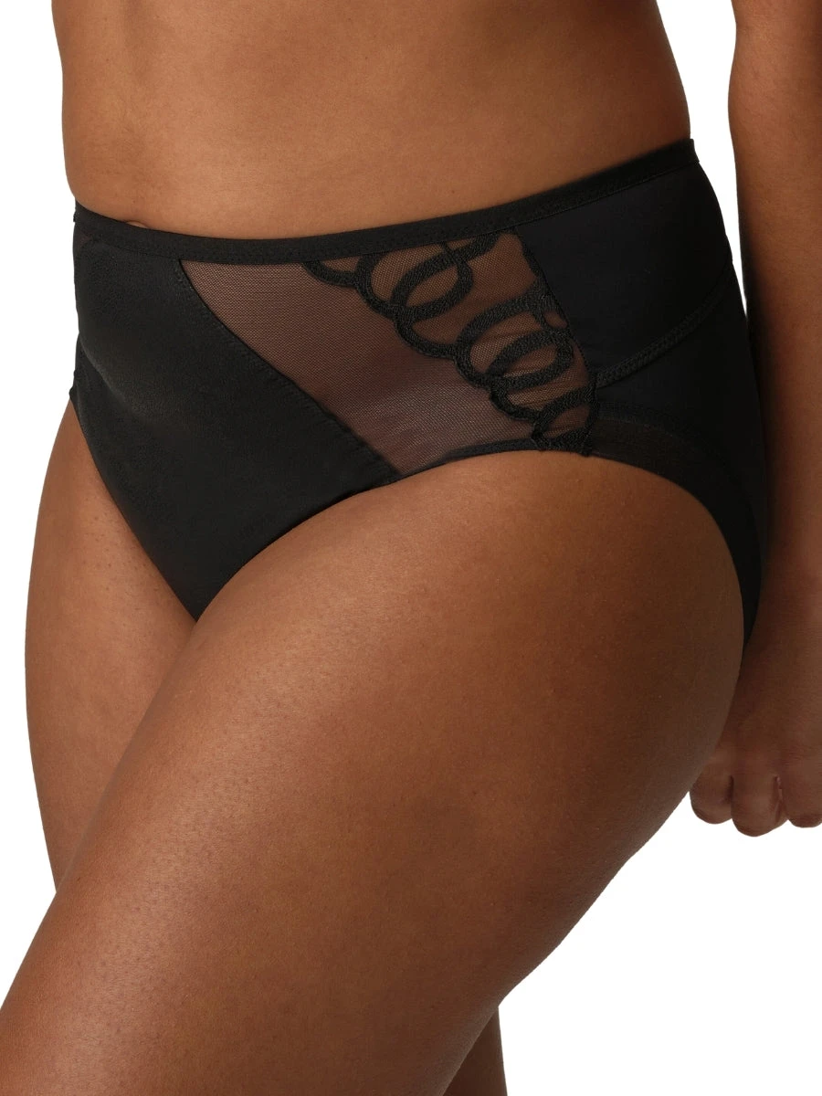 Experience luxury and sensuality with the Vallarta Full Brief by PrimaDonna. This high-waisted brief offers full coverage while featuring a mesh overlay for a touch of tantalizing intrigue. With a leather look and sophisticated styling, these briefs are the epitome of elegance. Feel confident and glamorous in the Vallarta Full Brief.