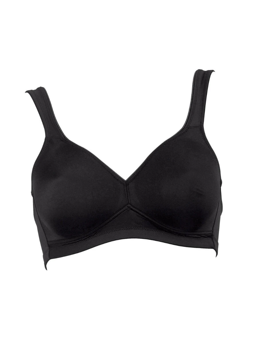 Expertly designed by Rosa Faia by Anita, the Twin Moulded Soft Bra in Black offers everyday support with its non-wired and shaped moulded cups. Crafted from soft microfibre, this bra lies smoothly under clothing while providing a comfortable fit. Perfect for everyday wear, this non-padded bra is a must-have.