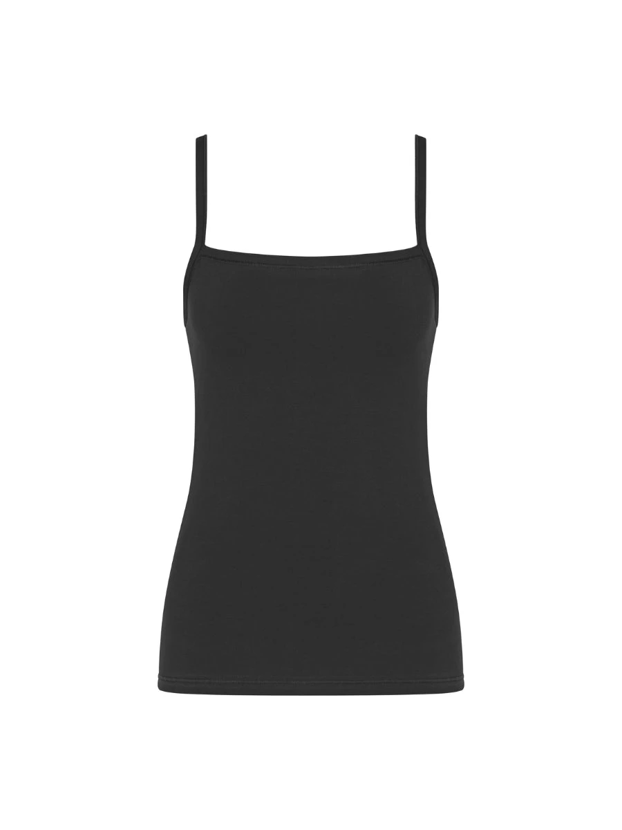Introducing the luxurious EVER Ease Spaghetti Top in timeless Black by Sloggi. This versatile camisole is perfect for everyday wear, with its adjustable spaghetti straps and comfortable fit. Use it as a layering piece or flaunt it on its own for a sophisticated and exclusive look.