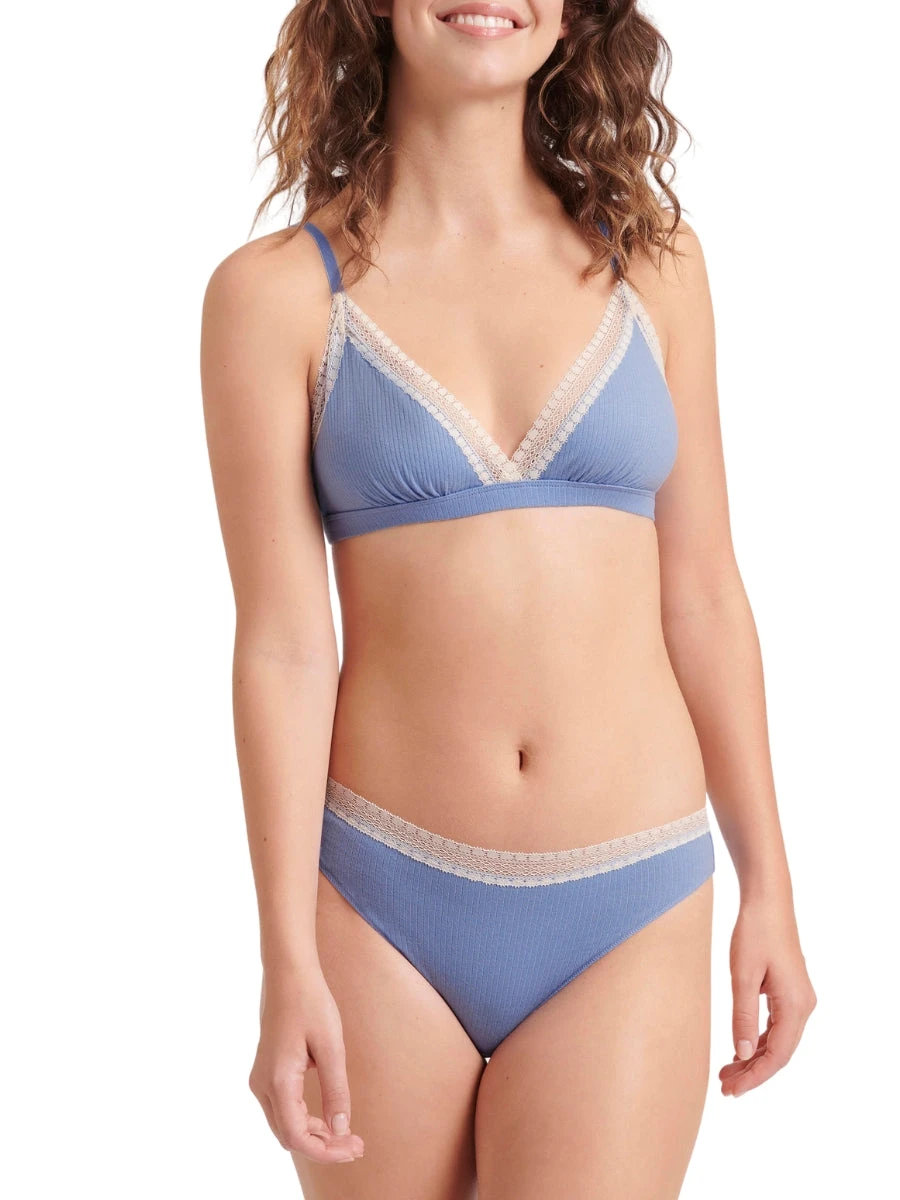 This fabulous bralette is made with comfort in mind: featuring soft organic cotton, no padding/wires and adjustable straps. Designed in a V-neck shape, it’s also detailed with soft lace trims and includes a wide underband to guarantee light support.