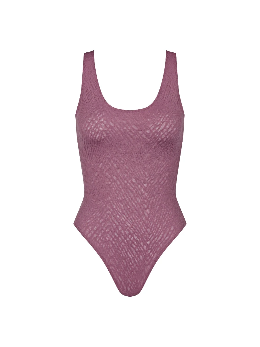 Indulge in luxury with ZERO Feel Bliss Body in Lila Clover by Sloggi. Experience light compression and ultimate comfort with this bodysuit that features a removable padding and a unique geometric mesh overlay. Versatile and stylish, it can be worn two ways for a flawless and sophisticated look. Elevate your wardrobe today.