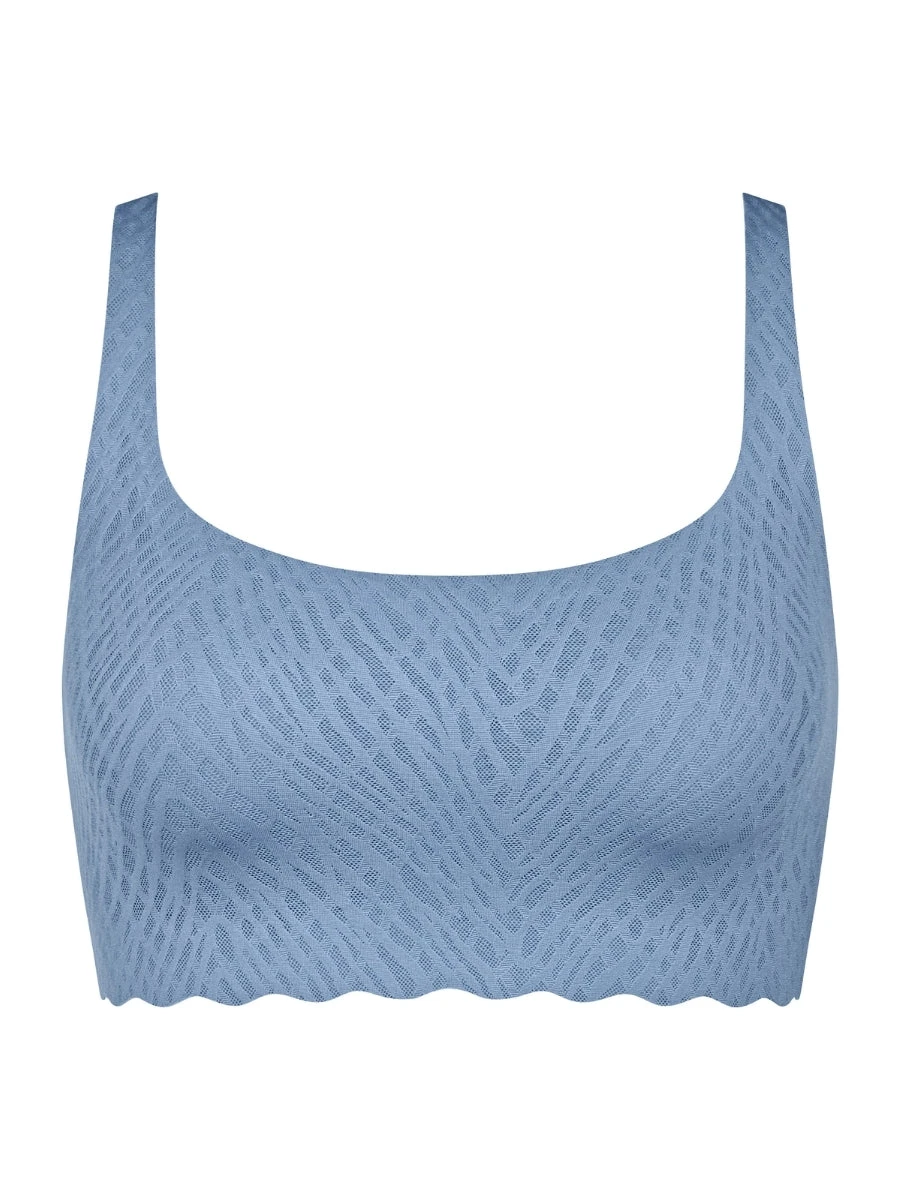 Indulge in luxurious comfort and effortless style with the ZERO Feel Bliss Top in Azura Blue by Sloggi. This elegant bralette features a removable padding and a delicate geometric mesh overlay, making it a versatile and chic addition to any wardrobe. Experience the ultimate sense of bliss with this premium product.