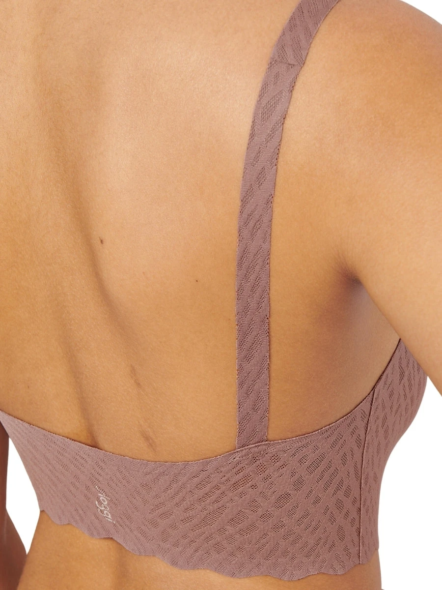 Indulge in luxurious comfort and effortless style with the ZERO Feel Bliss Top in Cacao by Sloggi. This elegant bralette features a removable padding and a delicate geometric mesh overlay, making it a versatile and chic addition to any wardrobe. Experience the ultimate sense of bliss with this premium product.