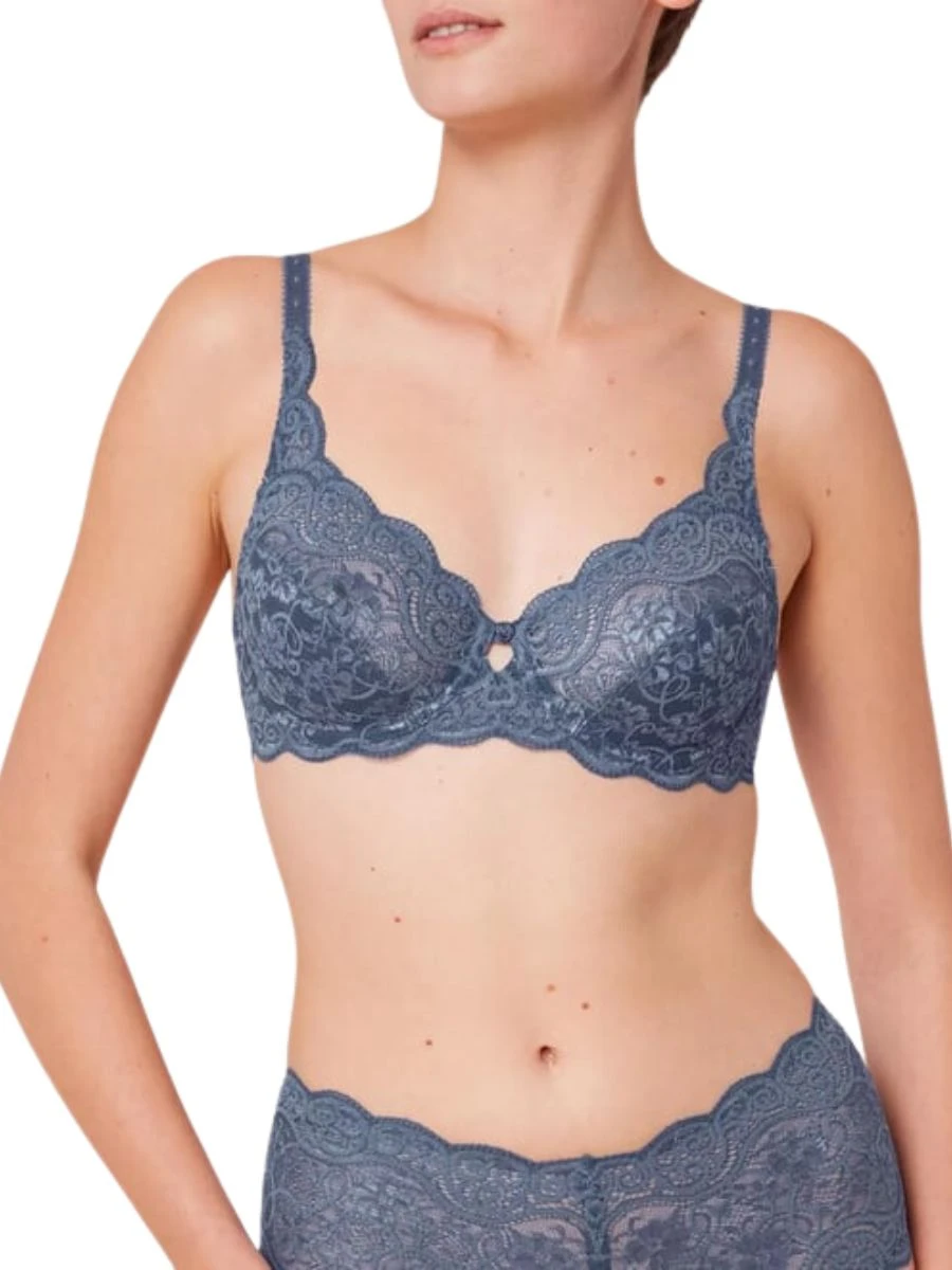 Indulge in luxury with the Amourette 300W High Apex Bra by Triumph. Its delicate lace and high apex design exudes elegance and sophistication, perfect for everyday wear. Elevate your lingerie collection with this Atlantis colourway of this most loved bra.
