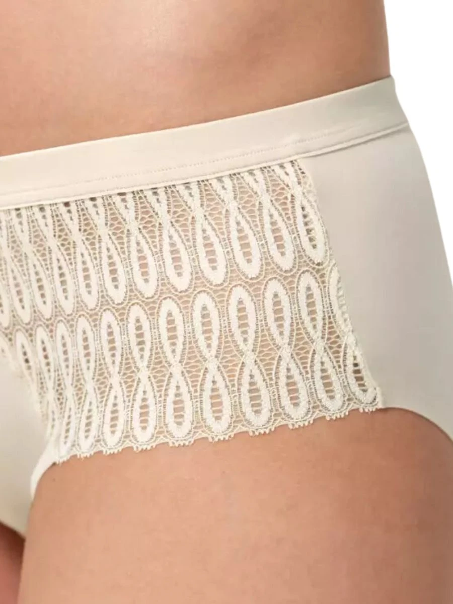 The Aura Spotlight Maxi Brief is a fabulous statement of elegance and sophistication. Crafted with maxi coverage, wide sides, and delicate patterned lace, these briefs offer a luxurious feel and maximum comfort. A smooth microfibre fabric and a supportive elastic ribbed waistband provide the perfect fit, while the cotton-lined gusset adds an extra layer of comfort.