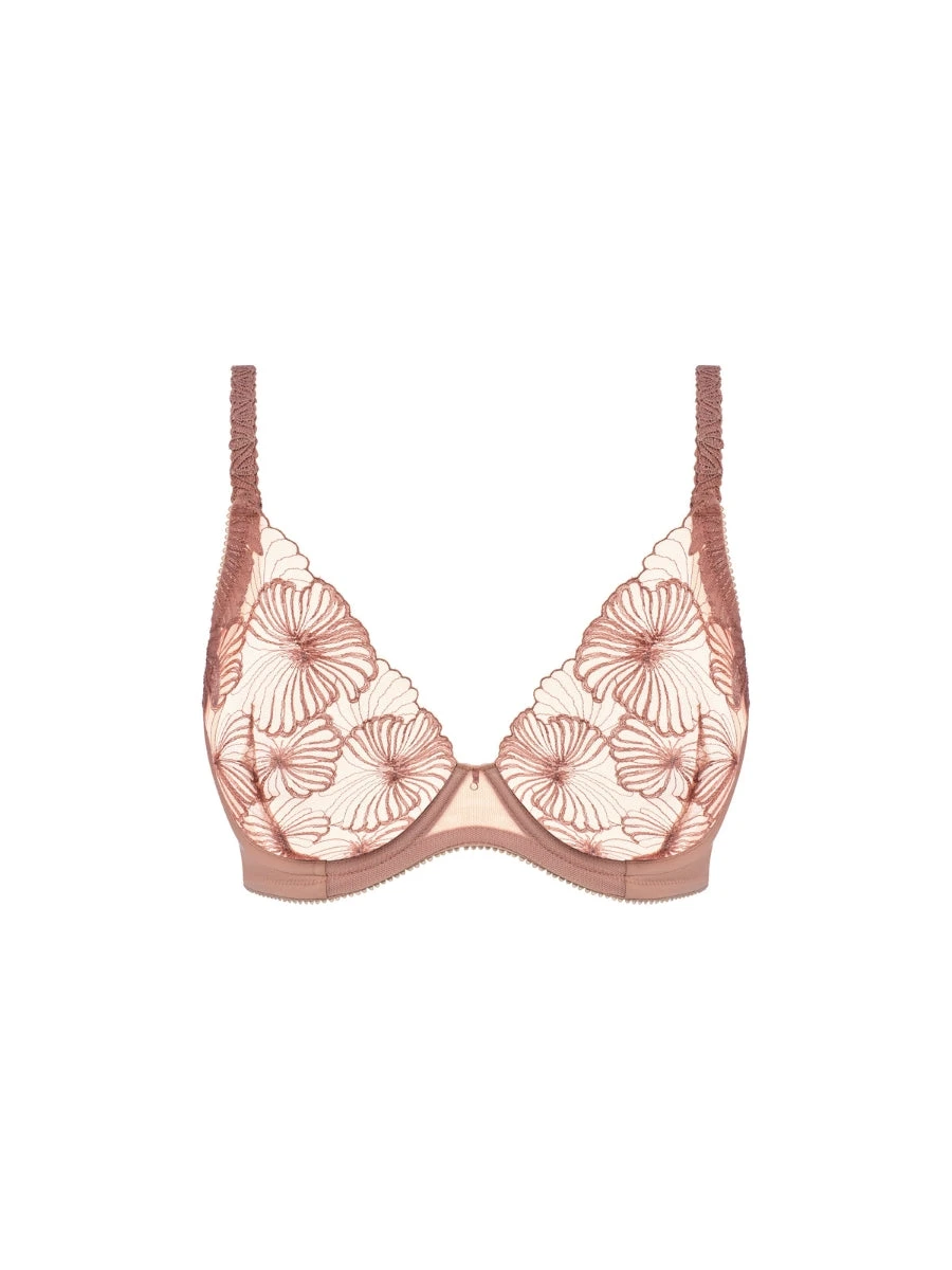 Elevate your lingerie collection with the Cateline Plunge Bra in Aspen Rose. Featuring a low plunge and high apex design, this non-padded bra from Wacoal offers excellent uplift with its underwired support. The soft microfibre wings and bold floral embroidery add a touch of elegance, while the sheer fabric adds a hint of sensuality.